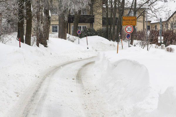 richtig Schnee am Ortsausgang Richtung Oberkotzau